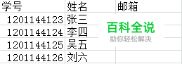 举个例子,我需要批量填上学生的邮箱地址,邮箱格式为“学号@bdu.edu.cn”,首先确保表中已经有学号列(如图A列)