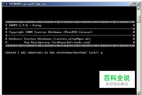 接下来问我们是否定位xampp的正确路径,晕太快跑过去了,没抓到图,大概就是Should I locate the xampp path correctly这个样子,选择y并回车。