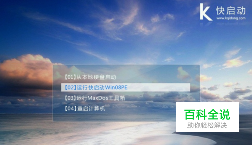 通过键盘上下键选择U盘启动项回车进入快启动主菜单界面,然后选择“【02】运行快启动win08pe”进入快启动pe系统,如下图所示: