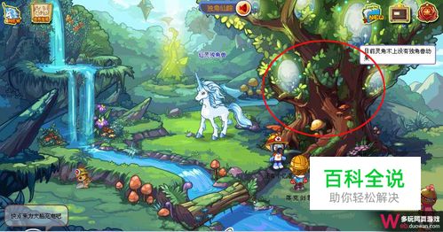 得到独角兽幼果之后,就该养成它了,那么如何让独角兽幼果成长呢?首先,我们来到独角仙踪,点击旁边的那棵大树。
