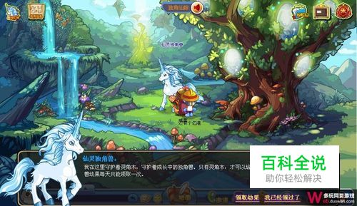 当培养进度达到100时,独角兽就诞生了,到时候我们就可以召唤它来战斗了,不过想要召唤独角兽,是需要道具的,这个道具就是灵角木叶片,大家可以点击独角仙踪里的水蓝蓝获得,每次可以得到5片。
