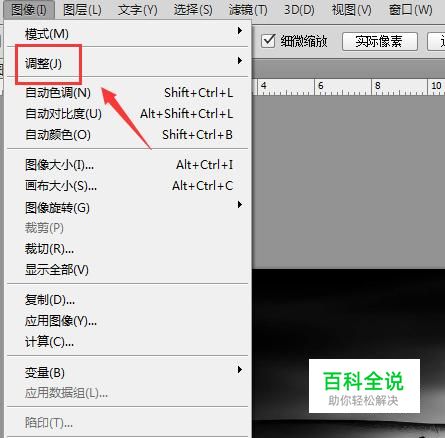 点击图像选项在其下拉菜单那里找到调整选项,如图所示: