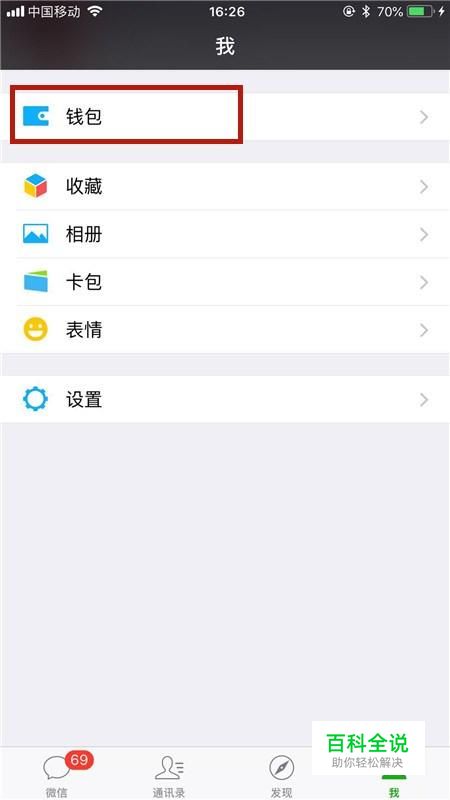 首先点击微信中的钱包,如下图所示。