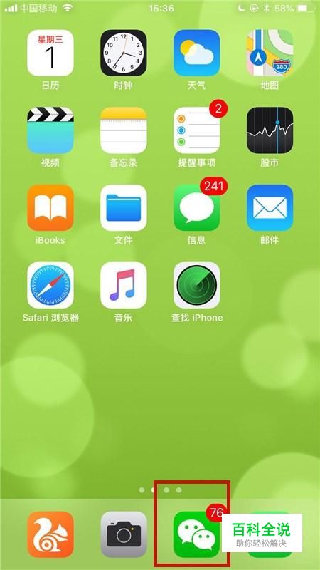 首先在我们的手机桌面上找到微信并点击它,如下图所示。