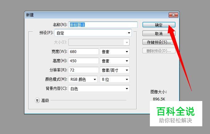 设置背景图层的参数,比如高、宽,然后点击“确定”。