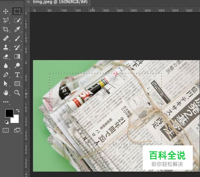 打开图片之后,在左侧工具栏中选择“选框工具”,然后在图片上框选一个选区。