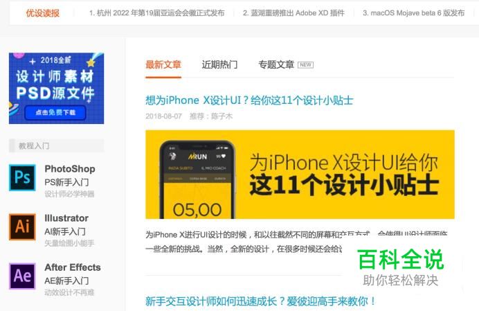 如果你想自学设计类软件的话,就可以在优设网中看以看,有PS/AE/AI等软件的新手入门教程,还会更新很多教程文章。