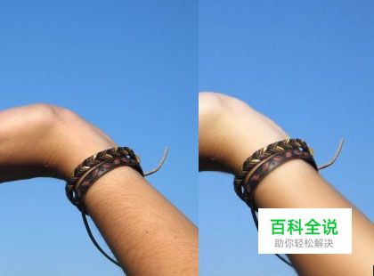 使用强度100%的模糊工具涂抹手镯附近和手背处残余汗毛。