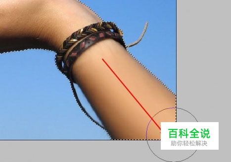 利用快速选取工具(CS4新工具)(如果不是CS4,请将手臂抠出来)选择手臂之外的部分,反选(Ctrl + Shift + I)得到手臂选区。