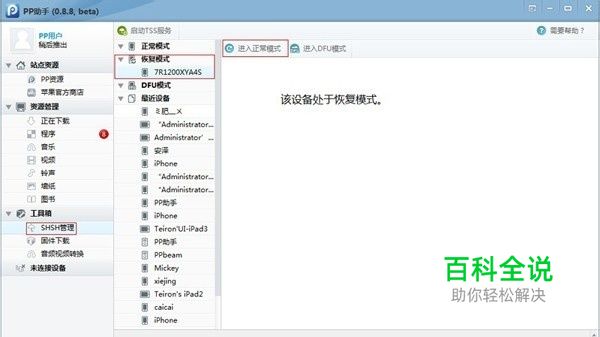 iOS用户在降级过程中有时候会陷入恢复模式而不能绕出。 首先要区分恢复模式与DFU模式的区别。两者的不同在于是否启动了iBoot。iBoot是iOS设备的启动加载器,DFU模式不会启动iBoot。因为在iOS设备试图恢复或升级时,iBoot会检测所要升级的固件版本,如果要升级的固件版本低于设备已安装的固件版本时,iBoot会禁止固件的恢复或升级。这就是为什么我们在降级时如果进入恢复模式,启动了iBoot则无法继续降级的原因。 恢复模式: 踢出恢复模式的方法: 一、使用PP助手踢出: 将设备连接电脑打开PP助手--SHSH管理--点击“进入正常模式”--设备重启后会进入主界面。 二、使用红雪(redsn0w)踢出恢复模式(支持A4处理器以下的iOS设备): 将设备连接电脑打开红雪(redsn0w)--Extras(其它)--Recovery fix(修复恢复)--需要进入DFU模式--等红雪(redsn0w)运行--设备像越狱那样等待开机进入主界面。 (从恢复模式进入DFU模式的步骤,其实跟从正常模式进入DFU模式一样,这就验证了一句话:当你在圆圈里绕不出来的时候,不如尝试向前。具体步骤是:按下电源键5秒——在不松开电源键的同时按下Home键,坚持10秒——在不松开Home键的同时松开电源键,坚持15秒。) 三、小雨伞(tinyumbrella)踢出方法: (需要安装Java环境方能运行) 将设备连接电脑打开小雨伞(tinyumbrella)-- 点击Exit Recovery 或 Fix Recovery--设备重启后会进入主界面。