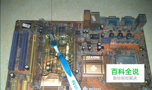 先用牙刷 粗略刷干净表面灰尘,再把牙刷沾上汽油,开始清理灰尘。灰尘或油污严重的地方多刷点汽油。{汽油不导电,挥发快,远离明火}刷完就能上机。