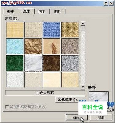 第2步,在打开的“填充效果”对话框中切换到“纹理”选项卡,在纹理列表中选择合适的纹理样式,并单击“确定”按钮即可,如图所示。