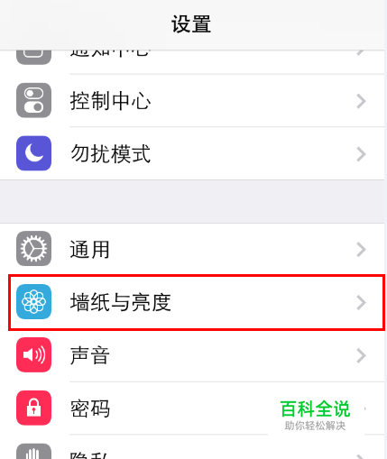 打开设置按钮之后找到“墙纸与亮度”选项,点击进入。