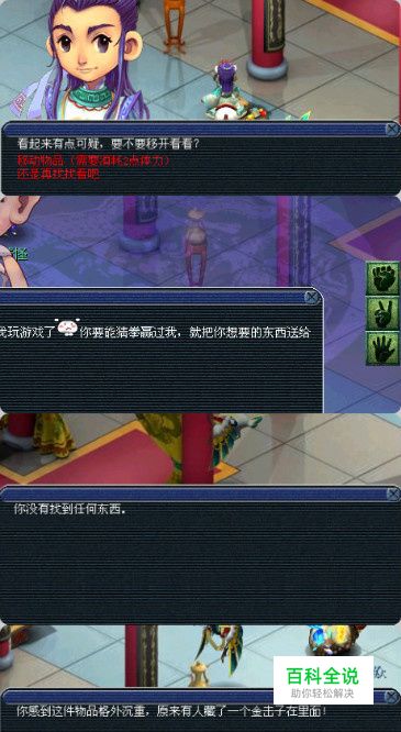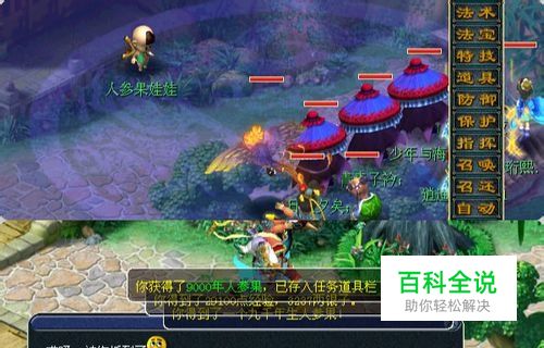 出了正殿去五庄观坐标84.31敲下人参果,战斗中使用包裹中的金击子对人参果娃娃使用,宝宝防御。共需要获取5个九千年人参果