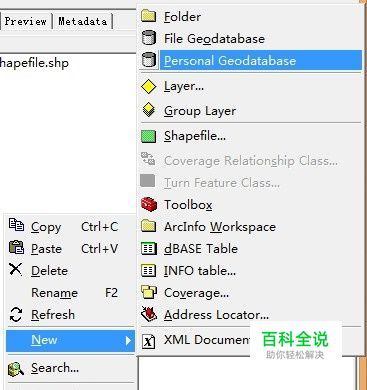 打开ArcCatalog,创建个人数据库(personl Geodatabase)