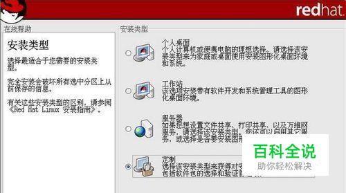 安装类型,由于一般安装linux为了学习,软件开发,服务器。推荐选择"定制". 磁盘分区设置,选择"手工分区". 在弹出的警告框,选择"是" .