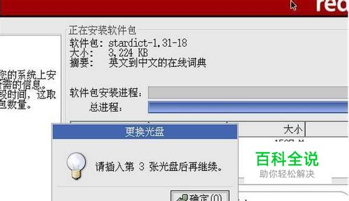 安装确认,请点击下一步。 然后在点击”确定“,继续安装,当第一张光盘安装完成后,会弹出提示。 第二张盘安装完成后,会弹出安装第三张盘。