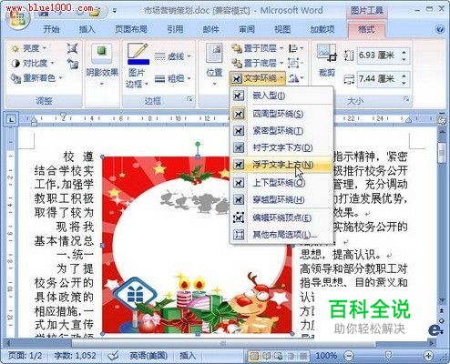 Word2007中设置图片文字环绕方式