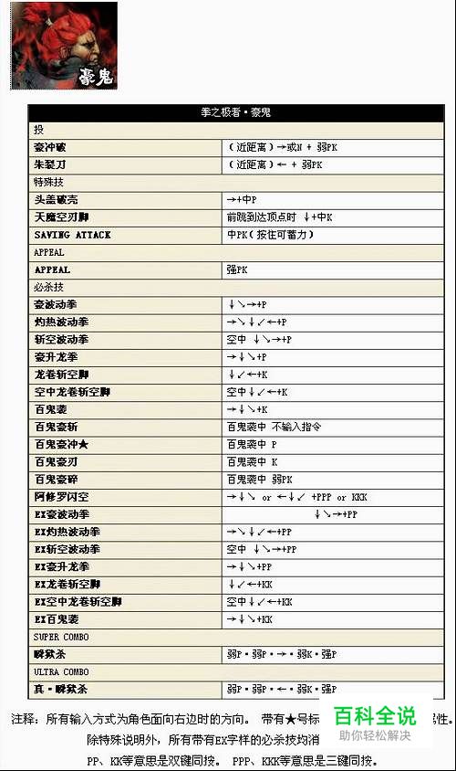 《超级街霸4:街机版》主要角色中文版出招表