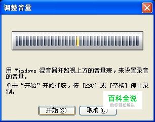 弹出“调整音量”对话框。单击“开始”开始捕获,按[ESC]或[空格]停止录制。