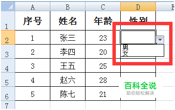 勾上“忽略空值”和“提供下拉箭头”前面的小方格;然后在“来源”下方,填写所需要作为下拉选项的各个选项,分别用英文的逗号隔开;比如“男,女”;然后点击确定。