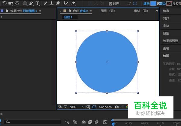 创建合成之后,在工具栏中选择“形状工具”来添加一个形状,这个我们添加一个椭圆。