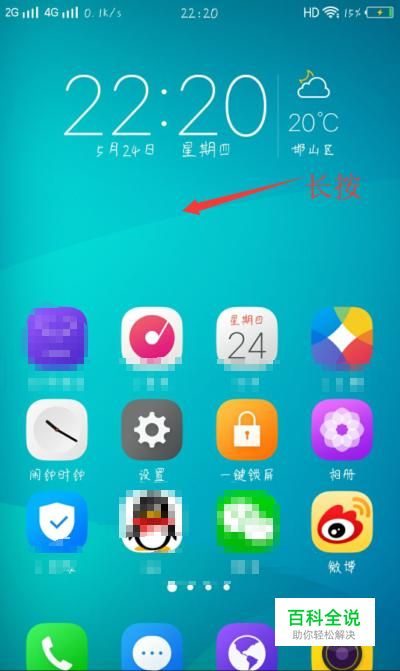 打开vivo手机,在屏幕空白处长按一段时间,如图所示。