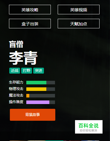盲僧使用小技巧 我方使用李青 盲僧是一位非常强势的打野英雄,在前期有非常不错的GANK能力,可以带动比赛的节奏。出色的位移技能使盲僧飞檐走壁,利用侦查守卫,他能够随意穿墙,在野区非常灵活。 敌方使用李青 他大招的使用非常困难,很容易坑队友,而且在游戏的后期对团队的贡献不大。