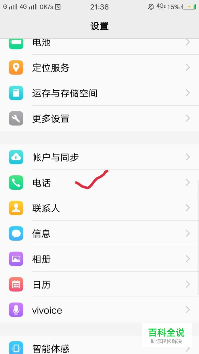 点开设置界面,找到电话选项,如图所示