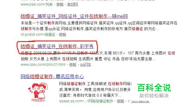 首先,我们搜索网上在线制作结婚证,这时我们会发现有很多的网站可以选择,此处,我选择了搞笑证件照这个,大家可以选择自己喜欢的