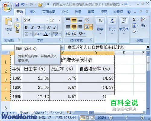 第1步,打开Excel2007窗口,选中准备粘贴到Word2007文档中的单元格。在“开始”功能区的“剪贴板”分组中单击“复制”按钮,如图2009021415所示。图2009021415 单击“复制”按钮