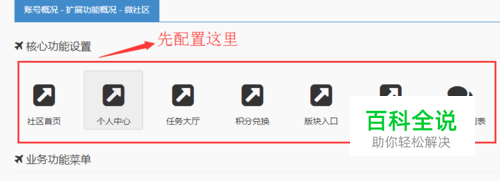 1.在【扩展功能】中找到【微社区】按照下图操作,先配置核心功能设置中的值(这里都是配置自动回复的)