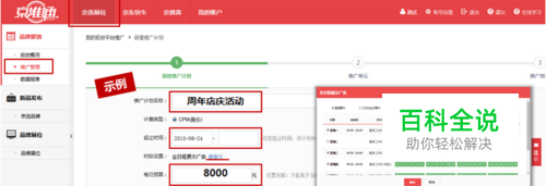 在京准通平台创建投放计划 1.登录进入京准通商家投放平台,进入“京选展位--品牌聚效--推广管理”,点击【新建推广计划】,按照页面提示进行投放操作。 2.【推广计划名称】活动、推广类型、商品说明等,越详细越便于日后的计划管理。 3.【活动日期设置】商家可根据长期投放的数据分析,得出每日平均推广计划浏览或点击高峰时间段,进行针对性的时间定向。 4.【计费类型】系统默认CPM竞价。 5.【时段设置】系统默认全日程展示,商家可自定义,精确到时。 6.【每日预算设置】商家自定义输入1-7位正整数,预算设置不能低于当前自账户已花费金额。 7.特别说明 【品牌聚效推广计划趋势图】显示该账号历史投放数据,系统提供包括展现次数、点击率和花费在内多种指标,时间粒度从小时至每分钟供筛选,为你提供效果评估和投放优化参考。