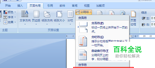 插入分节符 2007版word,选择“页面布局”-“分隔符”-“分节符”-“下一页”即可在下一页开始新的一节