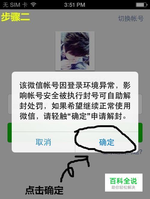 第二歩 点击登录以后会显示(该微信号因******各种原因,影响帐号安全被执行封号可自助解封处罚............)可以直接点击“确定”