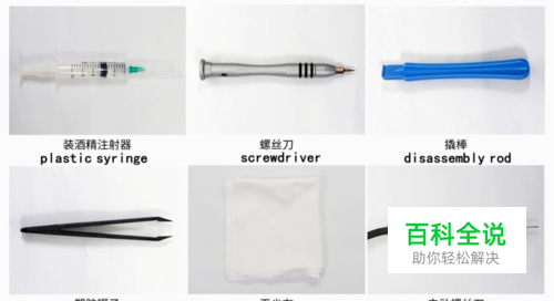 准备好需要用到的工具: 酒精注射器、螺丝刀、撬棒、塑胶镊子、无尘布、电动螺丝刀、取卡针