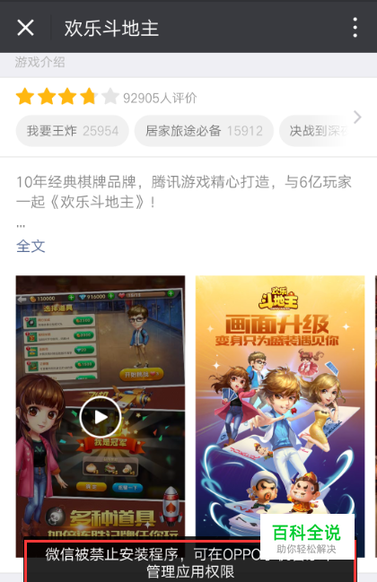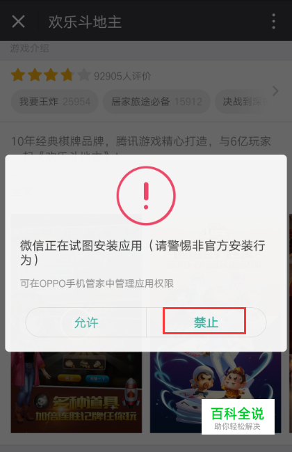 是由于小伙伴在安装微信游戏时误点击了禁止安装,引起权限受限。