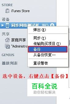 连接设备到电脑,运行iTunes,选择设备,右键点击【备份】