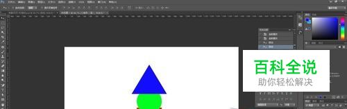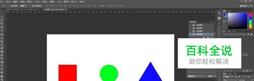 我们先理解什么是图层,我们先看一下图红绿蓝三个颜色,我们可以在红色箭头部分看到有三个图层,图层分别是正方形、圆形、和三角形。现在我们是全部排开的,所以我们能看到所有的图形化形状(如图),