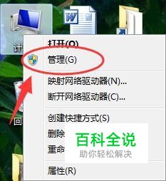 首先将光标移到我的电脑上,单击鼠标右键,选择“管理”打开计算机管理对话框