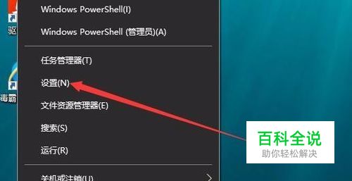 在Windows10桌面,右键点击开始菜单按钮,在弹出菜单中选择“设置”菜单项
