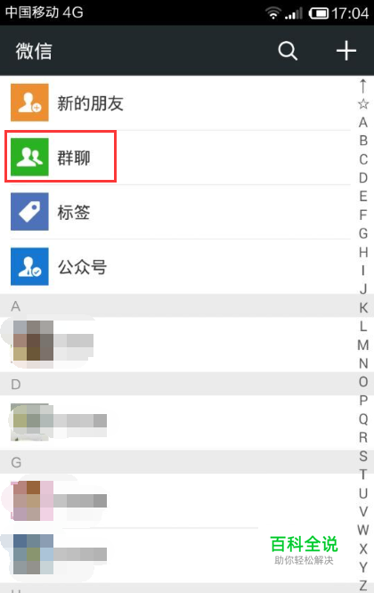 然后在微信主页面的通讯录里找到“群聊”功能,点击进入