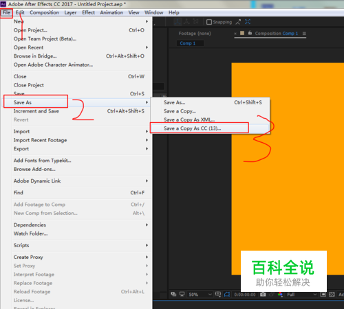 依次点击“File---Save As---Save a Copy As CC (13)..”按钮,会弹出一个存储界面