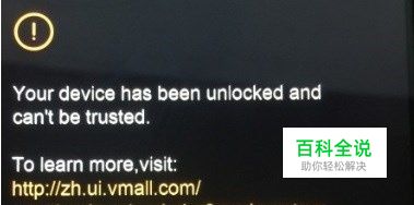 当刷机、解锁后手机出现your device has been unlocked and can't be trusted.的英文提示时(如图),无论如何操作,手机一直无反应。