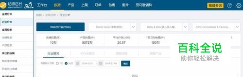 wish全行业数据 显示全行业的店铺数量,产品数量,平均售价,7天日均销售量,7天日均销售额,7天日均动销率。 通过这边的数据可以了解到wish整个平台的状况。