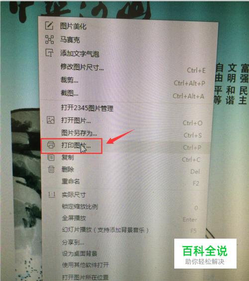 在弹出的列表中选择【打印图片】