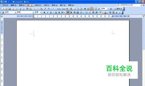 打开Word 2003,点击菜单栏的“插入”按钮,如图所示