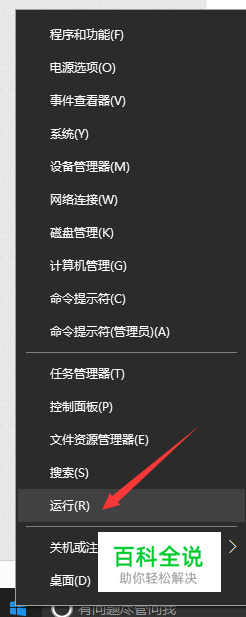 右键开始——选择【运行】