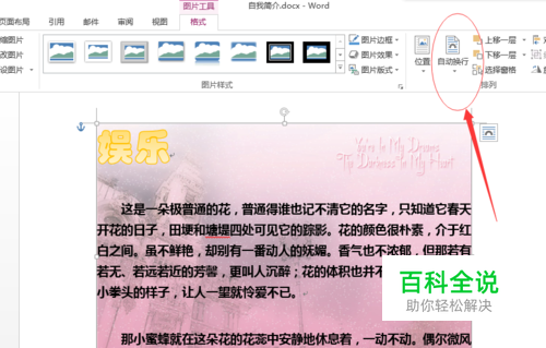 新插入的图片和文字是排斥的,想要把图片作为背景,要改变图片与文字的位置关系。