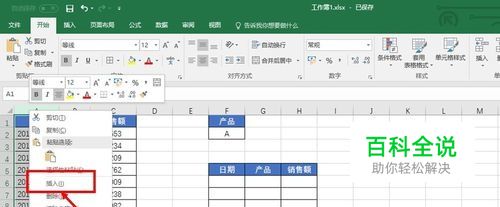首先,由于产品对应多列,所以我们需要插入一个辅助列将产品进行一个区分,鼠标右击,选择“插入”,如图